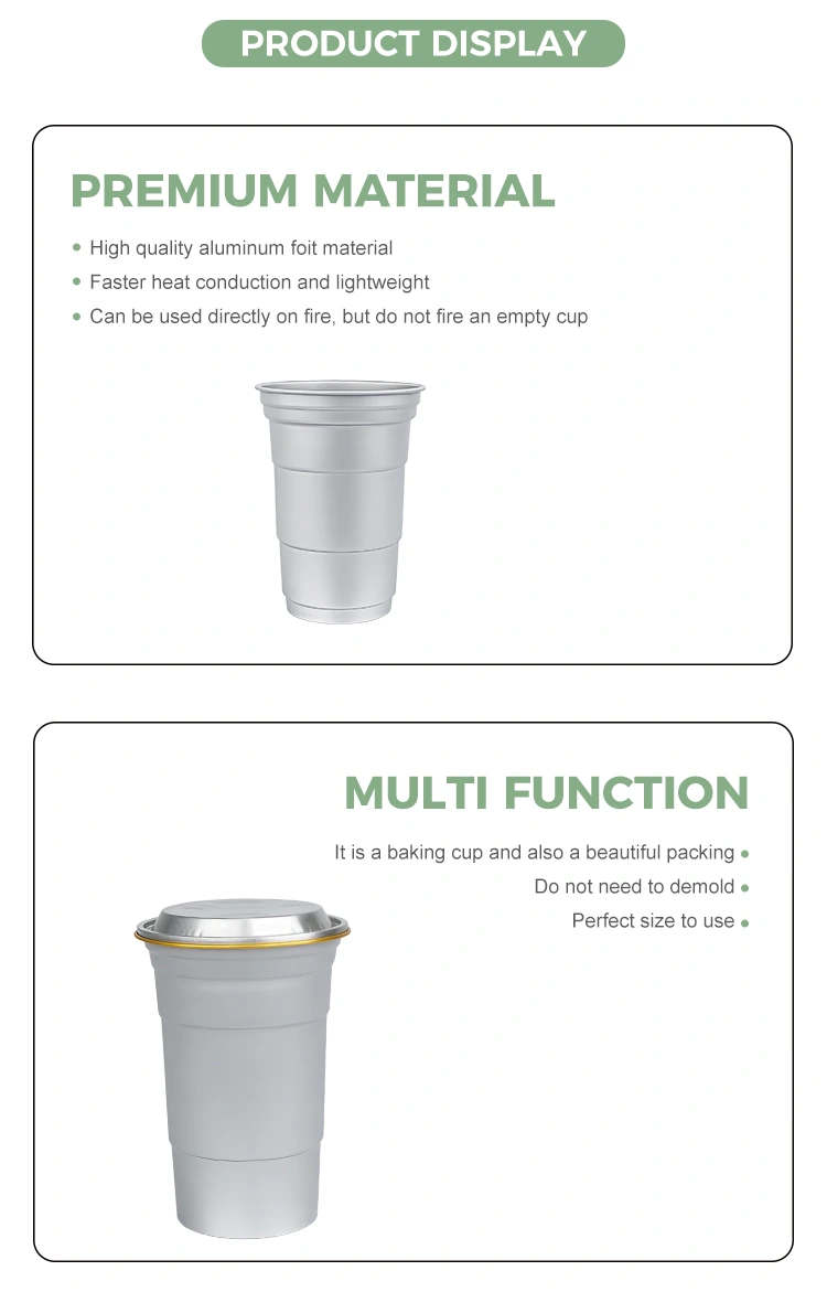 Жалпы контейнерлерден айырмашылығы, Yunchu 16oz бір рет қолданылатын алюминий фольга сусыны шыныаяқ белгілі сценарийлерде брендтерге арналған орауыш шешімдерді қамтамасыз ету үшін арнайы жасалған. Ықшам өлшемімен (460 миллилитр) бұл реттелетін бір реттік 16 унция арнайы алюминий фольгадан жасалған сусынға арналған шыныаяқ бір рет берілетін жылдам сусындарды тұтыну әдеттеріне жауап береді. Бұл 16 унция бір рет қолданылатын алюминий фольгадан жасалған мерекелік кешке арналған шыныаяқтар практикалық функцияларынан бөлек, сапарға, базарларға немесе кемпингтерге арналған. Ең алдымен, бұл бренд құнын арттыруға көмектеседі.