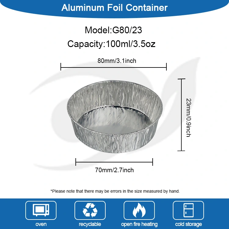 Юнчу алюминий фольга өндірушісінің бір реттік пісіруге арналған ауа қуырғыш күміс алюминий фольга контейнері торттарды, ауа қуырғыштарды және т.б. пісіруге жарамды. Пісіру кезінде біркелкі жылу айналымын қамтамасыз ету үшін өлшемі шағын тұрмыстық ауа қуырғыштар мен пештерде қолдануға жарамды. Тереңдетілген тостаған қабырғасының дизайны жеткілікті ингредиенттерді сыйғызып қана қоймайды, сонымен қатар пісіру кезінде май мен тұздықтың шашырауын болдырмайды және ауа қуырғышпен жоғары температурада пісіру арқылы оны таза ұстайды. Шағын сыйымдылық пісірудің кішкене бөліктерінің қажеттіліктеріне дәл сәйкес келеді. Ол жылуды біркелкі өткізеді және жану оңай емес. Ол жақсы жылу өткізгіштікке ие, біркелкі қызады, жану немесе күйдіру оңай емес. Бұл дәмді және қауіпсіз. Ол майға төзімді және ластануға қарсы. Оны пішіннен шығару оңай. Оның айналасында ұстау үшін баулар бар. Бүктелген пішінді қабылдау оңай. Астыңғы жағы дөңгелек және тегіс, оны қалыптан тез алып тастауға болады.