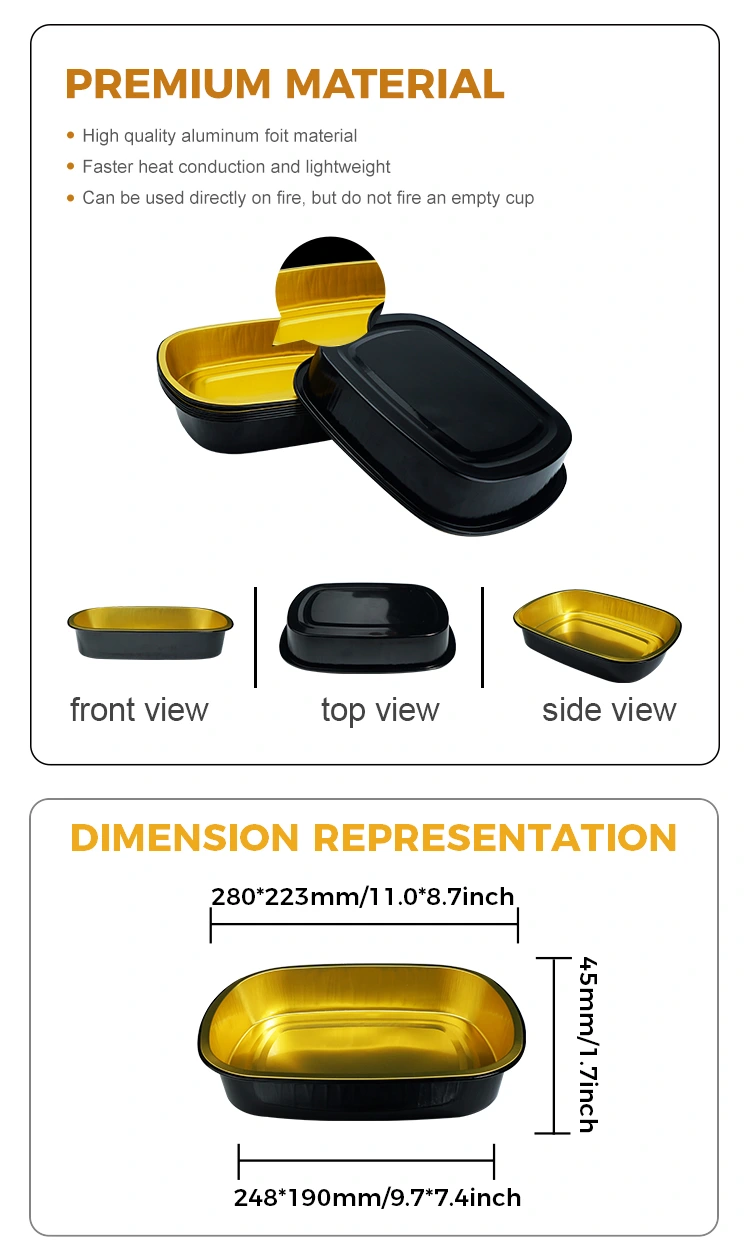 Бір рет қолданылатын қара алтын Төртбұрышты алюминий фольга контейнерлері