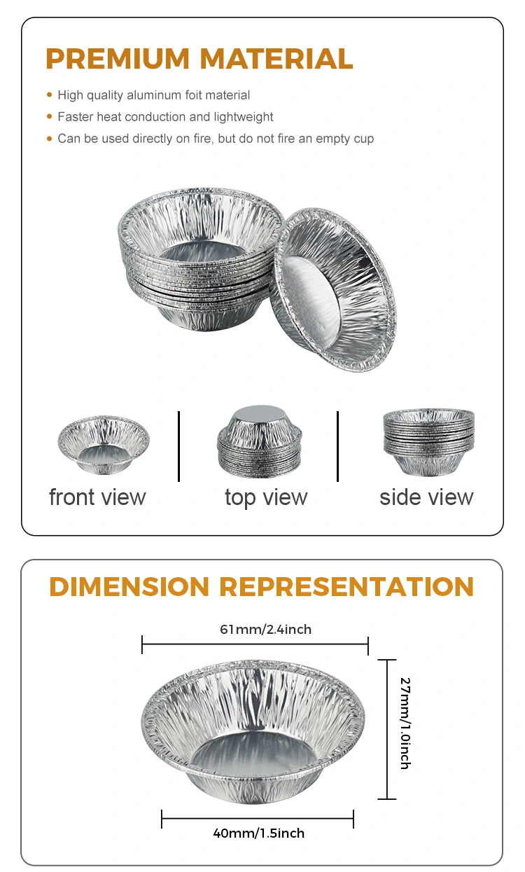 Юнчу алюминий фольгасы бір рет қолданылатын жұмыртқа торт науасы күміс алюминий фольга контейнері тағамдық қалыңдатылған алюминий фольгадан жасалған және бірнеше қауіпсіздік сынақтарынан өткен. Оның иісі және зиянды қалдықтары жоқ, бұл тағаммен тікелей байланыста болуды қамтамасыз етеді. Бірегей қоюландырылған дизайн өнімге тамаша қолдау және жоғары температураға тамаша төзімділік береді. Тұмшапеште жоғары температурада пісірілсе де немесе ауа қуырғышта дәл қыздырса да, ол оңай деформацияланбайды немесе ағып кетпейді, бұл жұмыртқа торттарының толығымен бекітілгенін және жиектерінің қытырлақ болуын және құлап кетпеуін қамтамасыз етеді. Сонымен бірге, алюминий фольга материалы жылуды біркелкі өткізеді, жұмыртқаның сыртында біркелкі күйіп, сыртында оңай қызып кетпеуге мүмкіндік береді. сырты алтын түстес және ішкі жағы нәзік кәсіби сортты жұмыртқа торттары.