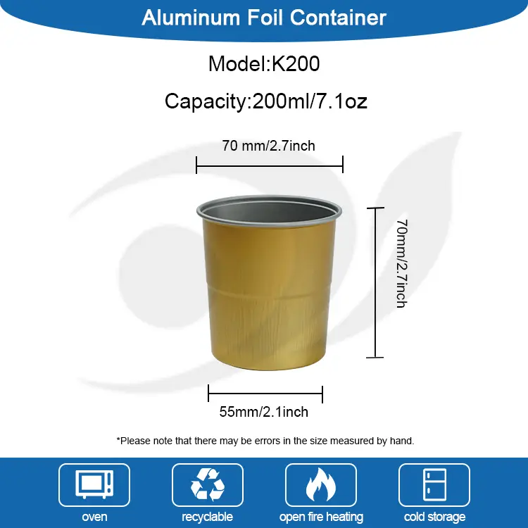 Yunchu алюминий фольга фольгасы 80111111 алюминий фольгасынан жасалған, ол улы емес, дәмсіз, қауіпсіз және сенімді болу үшін 8011 алюминий фольгасынан жасалған. Кубокта астыңғы жағында заманауи дизайн бар, ол түбінде тұрақты және сырғып кетпейтін, оны алып жүру және пайдалану оңай. Пайдаланушылар шыныаяқтарды жууды немесе оны таңдамаңыз, сонда оларды қолданғаннан кейін қайта тастайды немесе қайта өңдей алады, бұл өте экологиялық таза. Кубок тез жылуды тез өткізеді, ол суық немесе ыстық, ол жылуды біркелкі таратады, және оны біркелкі тарта алады, және оны ұстап, бос орынды үнемдеу оңай. Бірегей кесілген шыныаяқ дене дизайны, жоғарғы жағында кең және төменгі жағынан тар.