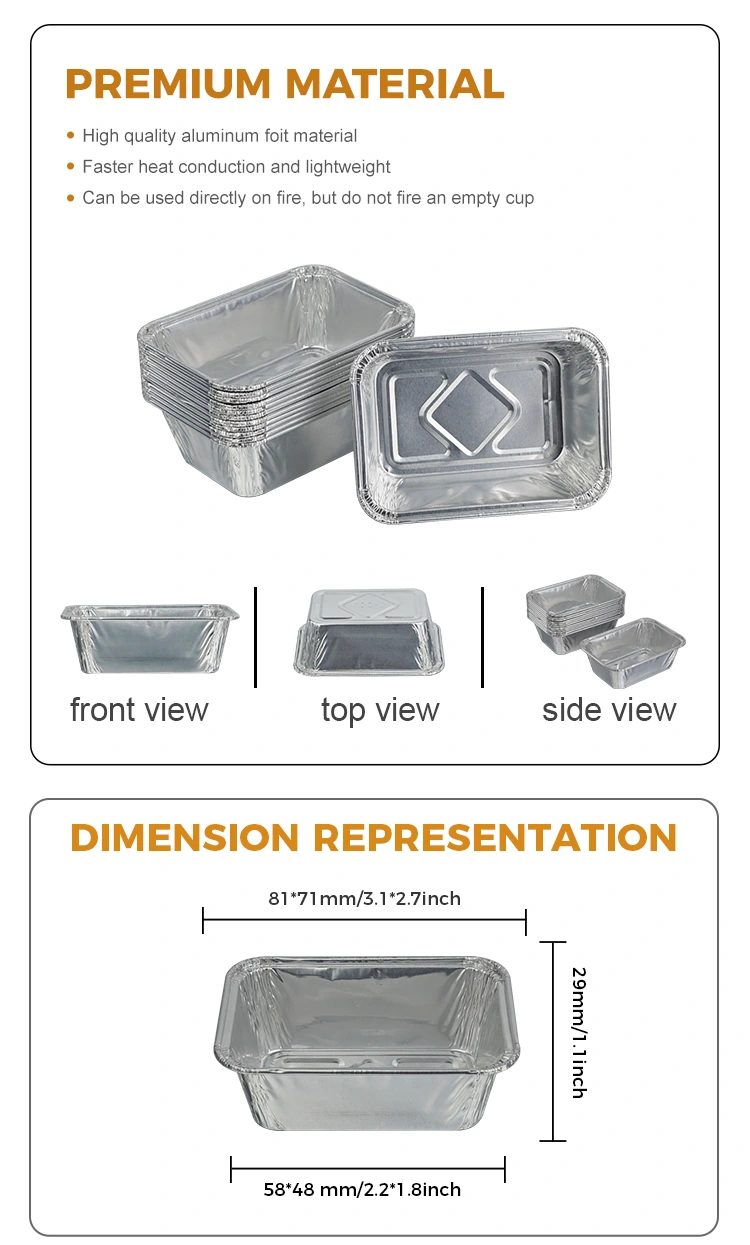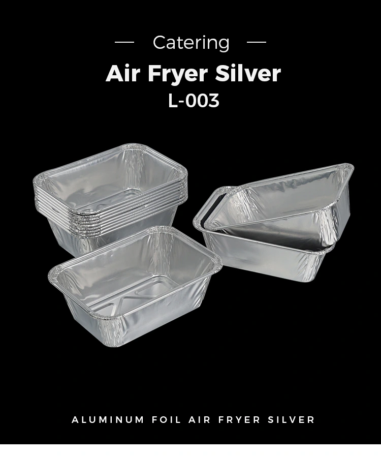 Юнчу алюминий фольга өндірушісінің бір рет қолданылатын төртбұрышты пісіруге арналған ауа қуырғыш күміс алюминий фольга контейнері күнделікті тұрмыстық пісіруге, ауада қуыруға, ашық кемпингтерге және кешкі ас кештеріне жарамды және алюминий фольга контейнерлерінің жоғары температураға төзімділігін сақтайды.