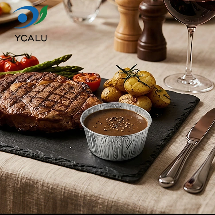 Бір рет қолданылатын дөңгелек соус Күміс алюминий фольгадан жасалған тағамдық контейнерлер