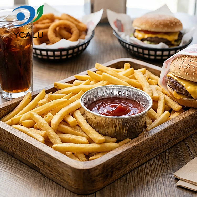 Юнчу алюминий фольга жеткізушісі бір рет қолданылатын дөңгелек соусты ауа қуырғыш күміс алюминий фольга контейнері Азық-түлік дәрежесіндегі алюминий фольга материалы, иісі жоқ, ауыр металл қалдығы жоқ, тамақ өнімдерімен байланыс стандарттарына, жоғары тазалық пен тұрақты химиялық қасиеттерге сәйкес келеді. Ол қышқыл тұздықтармен толтырылған және жоғары температурада қыздырылған болса да, ол зиянды заттарды шығармайды және тамақпен тікелей байланыста болған кезде сіз өзіңізді толығымен қауіпсіз сезінесіз. Өнім FDA азық-түлік санатының сертификатынан өтті және FDA 21 CFR қатысты стандарттарын қатаң сақтайды, кәсіби көші-қон сынағы мен ауыр металдарды анықтағаннан кейін қорғасын және кадмий сияқты зиянды заттардың мазмұны қауіпсіздік шегінен әлдеқайда төмен және біліктілік толық. Үйде немесе коммерциялық мақсатта пайдалану үшін болсын, сіз жан тыныштығымен таңдай аласыз. Оны етті маринадтауға арналған тұздықтарды, көкөністерге арналған салат таңғыштарын және тұшпараларға батыруға арналған сірке суы бар ыдыстарды бөлу үшін пайдаланыңыз. Бөлімдері ысырапсыз дұрыс. Ол сондай-ақ иістің өтуін болдырмайды және оны тоңазытқышта орын алмастан ұқыпты сақтауға болады. Алып кететін саудагерлер оны мөрленген және ағып кетпейтін соустарды сақтау үшін пайдаланады және тұтынушыларға таза түрде жеткізіледі. Кетчуп, тәтті чили соусы немесе қою күнжіт соусы болсын, тағамның ағып кетуінен және ластануынан ұят болмайды. Тіпті ашық ауада пикниктер мен кемпингтер үшін сіз өзіңізбен бірге бірнеше алып келіп, соустарды ұстау үшін пайдалана аласыз. Ол жеңіл және орын алмайды. Қолданғаннан кейін оны бірден тастауға болады. Үйге бір топ лас контейнерлерді алып жүрудің қажеті жоқ. Бұл негізінен оңайлық пен қиындықсыз туралы.