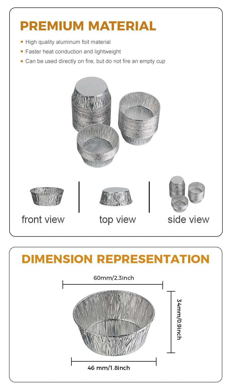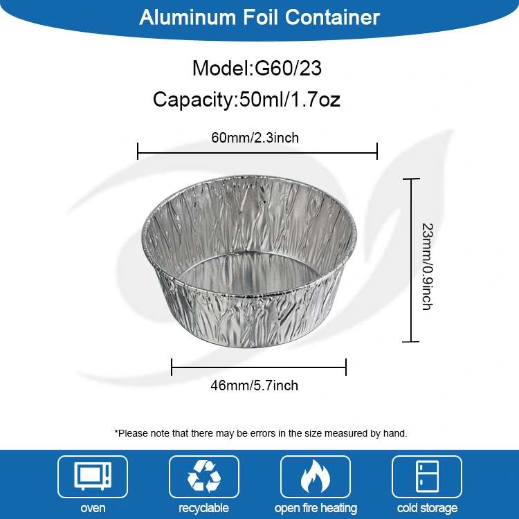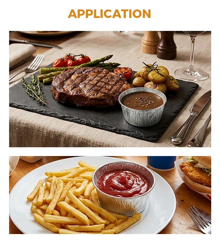• Бір рет қолданылатын дөңгелек соус Күміс алюминий фольгадан жасалған тағамдық контейнерлерБір рет қолданылатын дөңгелек соус Күміс алюминий фольгадан жасалған тағамдық контейнерлер