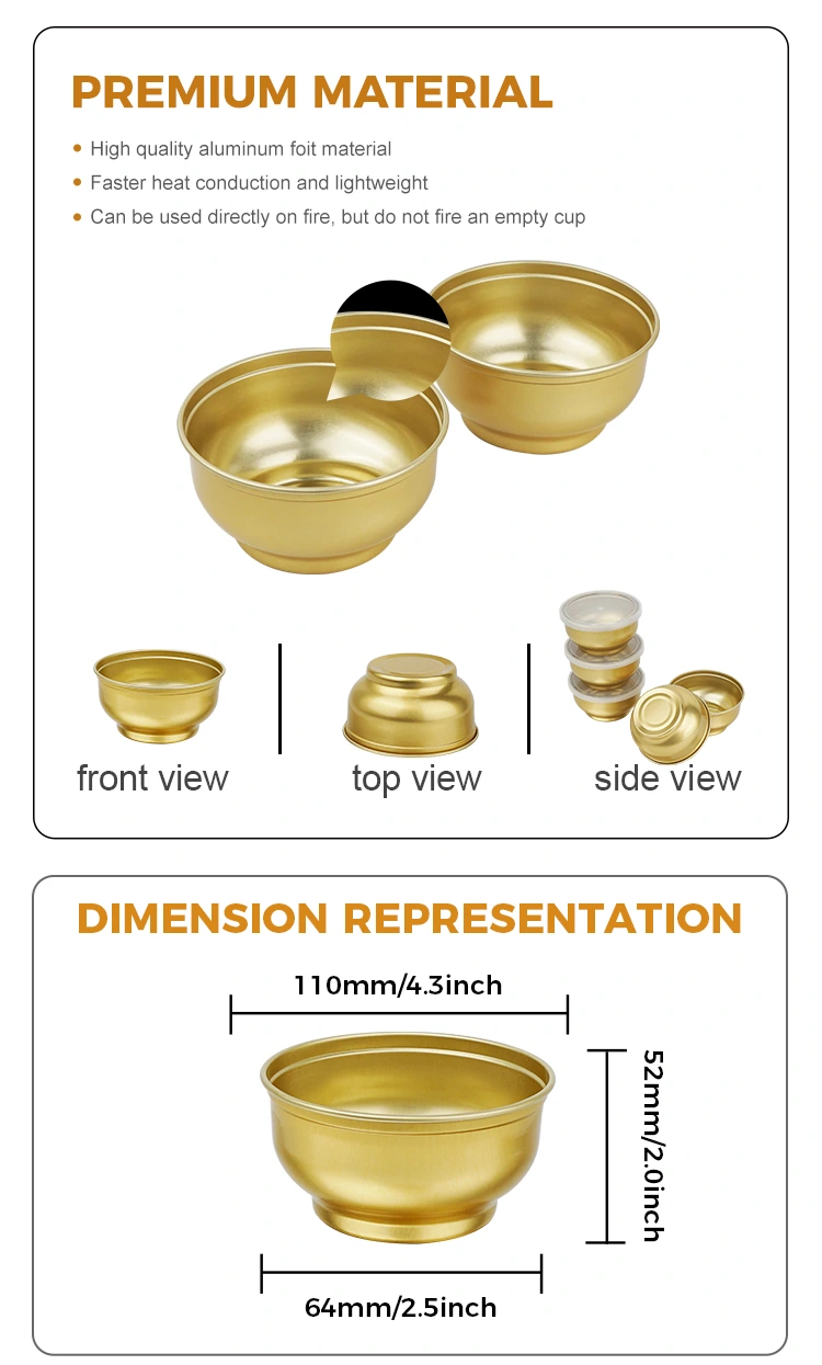 • Бір рет қолданылатын дөңгелек кішкентай алтын ыдыс алюминий фольга контейнерлеріБір рет қолданылатын дөңгелек кішкентай алтын ыдыс алюминий фольга контейнерлері