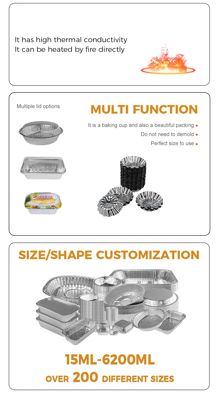 Көтерме өнімдер, алюминий фольга материалы, қауіпсіз және уытты емес, жұмсақ және уытты емес, жоғары температурада, қауіпсіз және уытты емес пайдаланылған материалдар, сіз оны оңай және уытты емес пайдаланған кезде, сіз оны оңай және уытты емес, түсте алып тастау оңай, пішінді зақымдамаңыз, жуыңыз және қатайтыңыз Материалдың деформациялануы оңай емес, Қысқартқыштың жақсы кедергісі, кастрюльді жуып, тазартылғаннан кейін жақсы, тегіс тағамды оқшаулау оңай, төменгі жағынан тегіс, төменгі жағынан тегіс, ол ашық жалынмен қыздыруы мүмкін, ал қалыпта біркелкі қызады.