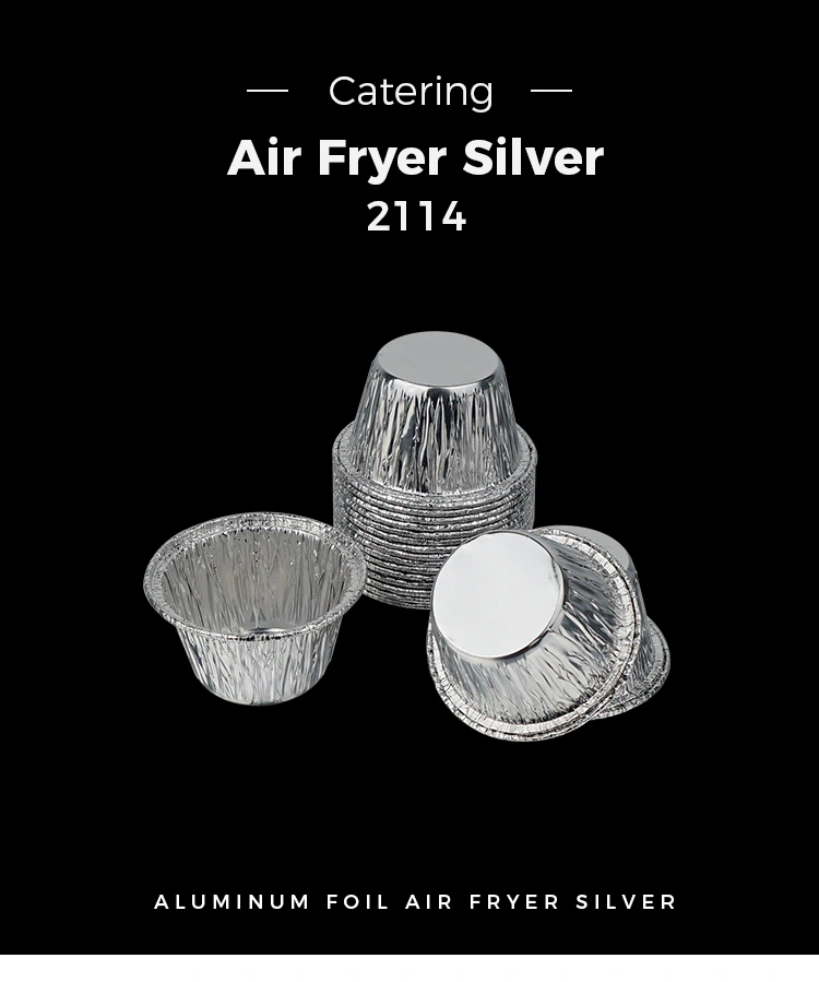 • Бір рет шағын дөңгелек торт ауа қуырғыш Күміс алюминий фольга тағамдық контейнерлерБір рет шағын дөңгелек торт ауа қуырғыш Күміс алюминий фольга тағамдық контейнерлер