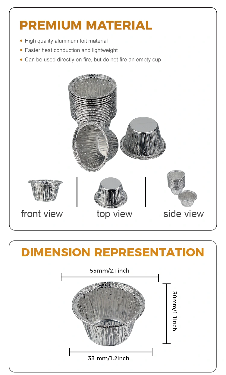 Юнчу алюминий фольга өндірушісінің бір реттік шағын дөңгелек торт ауа қуырғыш күміс алюминий фольга контейнері АҚШ-тың FDA тағамдық байланыс қауіпсіздігі сертификатынан өткен және ЕО SGS тағамдық байланыс материалдарының қауіпсіздік стандарттарына сәйкес келетін 8011-O тағамдық алюминий фольгасын пайдаланады. Кәсіби сынақтан өткеннен кейін оның иісі және зиянды қалдықтары жоқ. Ол тағамның барлық түрлерімен тікелей байланыса алады. Оны деформациялау немесе бұзу оңай емес. Ол тиімді түрде ағып кетпейді және жабысуға қарсы. Ол тортқа арналған қамыр, пудинг сұйықтығы, тұздық, т.б. сияқты сұйық ингредиенттерді тікелей ұстай алады. Сыртқы оралған жиек дизайны сызаттарға қарсы, қолыңызды тырнап алу қаупін азайтады. Температураға төзімділік диапазоны -40℃-ден 220℃-қа дейінгі аралықты қамтиды және оны ауа қуырғыштарға, пештерге, бумен пісіргіштерге және микротолқынды пештерге (орташа-төмен жылу) бейімдеуге болады. Оны шағын торттар мен жұмыртқа торттарын пісіру үшін тікелей ауа қуырғышқа салуға болады, сонымен қатар мұздатылған ингредиенттерді ерігеннен кейін тікелей қыздыру үшін, пісіру мен пісірудің әртүрлі қажеттіліктерін қанағаттандыру үшін пайдалануға болады.