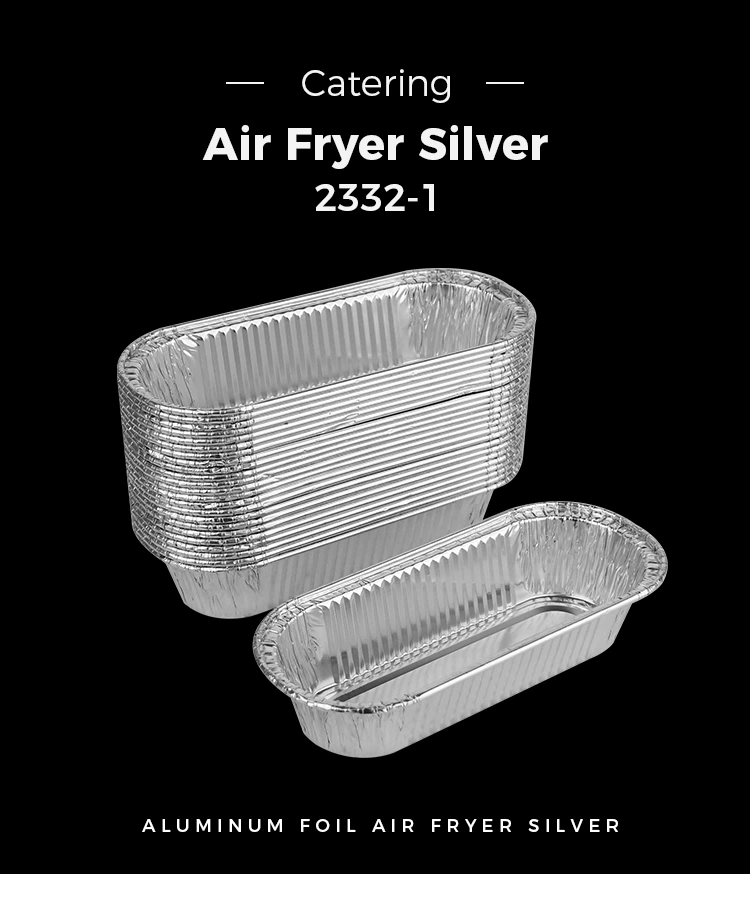 • Сопақша Ауаны ауа қуыруы Күміс алюминий фольга контейнерлеріСопақша Ауаны ауа қуыруы Күміс алюминий фольга контейнерлері