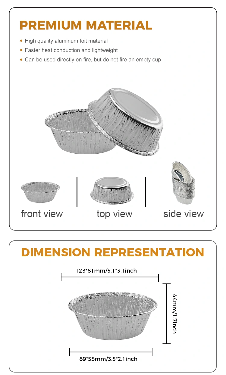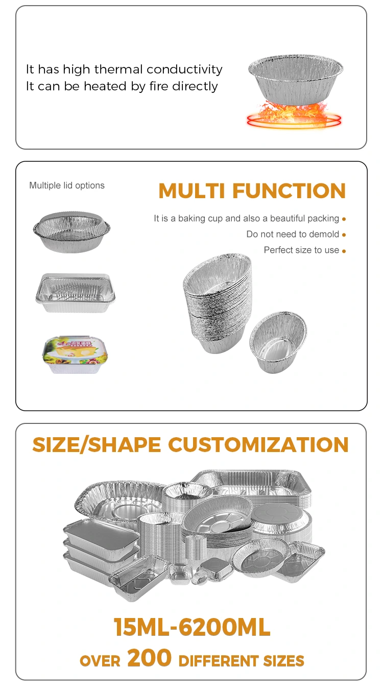 Ерекшеліктері: Тазаламай-ақ, сау және экологиялық таза, кішкентай нәзіктіктер, шағын нәзіктіктер жасау, отбасылар мен наубайханалардың таңдауы, алюминий фольга материалы қауіпсіз және гигиеналық, тазалауға, тазалауға, тамақ дайындауға ыңғайлы.