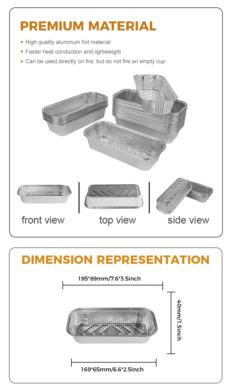 Ерекшеліктері: түскі ас бокс 8011 алюминий фольга материалы жақсы жылуды сақтаудан жасалған, ол тағамның температурасын сақтай алады және тағамды одан да дәмді етеді. Сонымен қатар, тікбұрышты барбекюге арналған күміс алюминий фольга контейнерінде біздің логотипті баптауға, тұтынушыларға әсерді тереңдетуге, одан әрі тереңдетуге және сіздің бренд имиджін жақсартуға болатын қыздыруды сақтау функциясы бар.