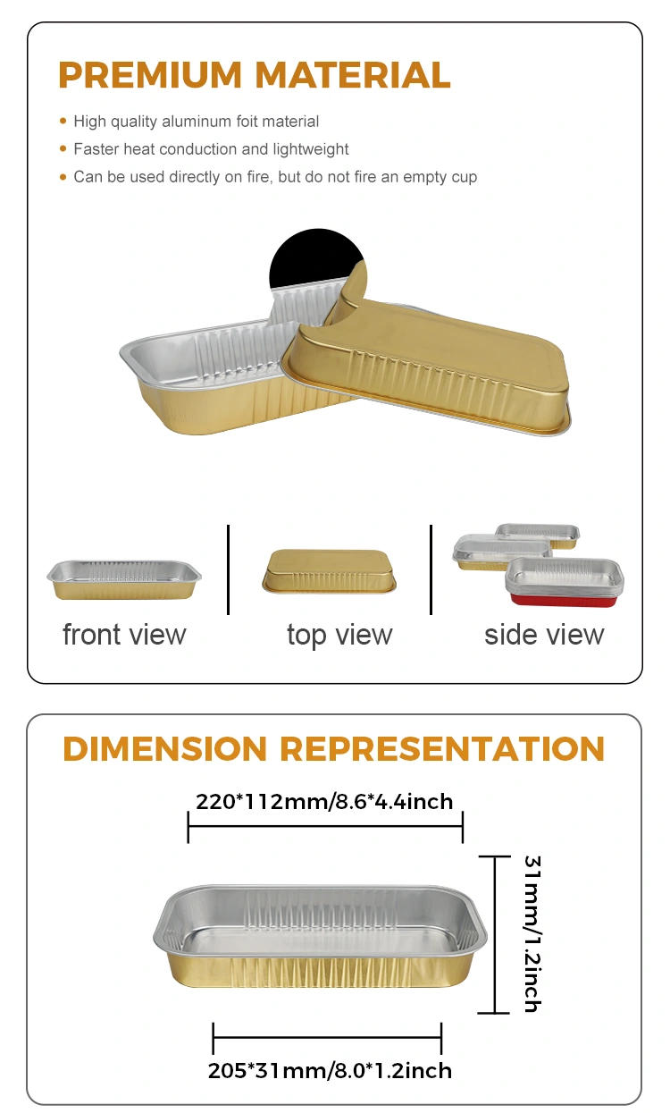 Пісіруден және өндіруден бастап, тіктөртбұрышты алтын пісіру, «Төртбұрышты алтын пісіру» Тікбелі алюминий фольга контейнерлері әр дәмді тағамға әр дәмді тағамға және қауіпсіз жолмен қол жеткізуге мүмкіндік береді. Таңдаңыз, сонда пісіру тек дәмді ләззат қана емес, сонымен қатар көру мен тәжірибені жаңартқан кезде де.