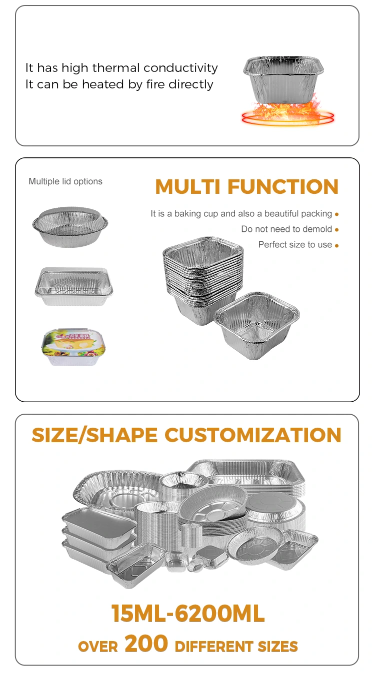 Төртке пісіру тақтасы Yunchu алюминий фольга жеткізушісі ұсынатын күміс фольга контейнері әр түрлі жағдайда, соның ішінде ауаны қуырғыштар, кішкентай пісіргіш пештер, тамақтану пештері және асханалар үшін жарамды. Ол устрица, десерт қызыл бұршақтарын, гриль тауық еті мен буға пісірілген торттарды жасауға ғана жарамайды, сонымен қатар түрлі ингредиенттермен жұптастыруға және тамақтану индустриясының барлық аспектілерінде кеңінен қолданылады. Контейнердің құрамында жабыспайтын және жабыспайтын дизайн, вагон және дөңес құрылымы бар, бұл құралды босату және сыртқы келбетті сақтау үшін азық-түлікке жеңілдетеді. Бұл ашық жалынды грильдеу немесе бумен пісіру ме, әлде оны шектеусіз оңай шешуге болады. Оның материалы берік және берік, оны тек пештерде және ауамен қуырғыштарда ғана емес, сонымен қатар ыңғайлы және ораза ұстайтын ашық жалын грильдерінде немесе пароходтарда да пайдалануға жарамды етеді. Сонымен қатар, контейнердің беті тегіс және тегіс, ал жиектері дөңгелектенеді және қолдарды тырнап, бүктеу оңай емес, тіпті бүктелген болса да, ол ұстауға әсер етпейді. Біз сіздің әр түрлі қажеттіліктеріңізді, соның ішінде квадрат, дөңгелек және жүрек тәрізді стильдеріңізді ұсынамыз. Егер сізді қызықтырса, қосымша мәліметтер алу үшін клиенттерге қызмет көрсету қызметкерлерімен кеңесіңіз.